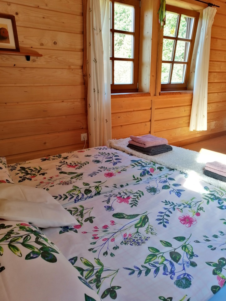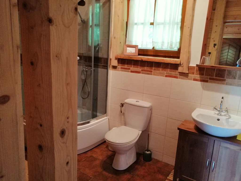 Powierzchnia domku wynosi 60m2, mieści maksymalnie 5 osób. W domku Goście mają do dyspozycji 2 sypialnie, kuchnię, część wypoczynkową, łazienkę oraz werandę.