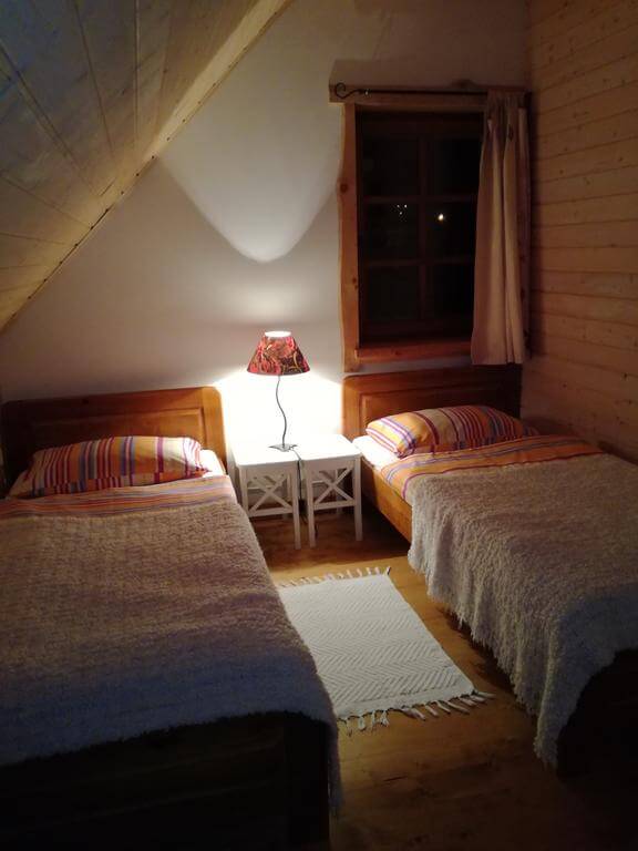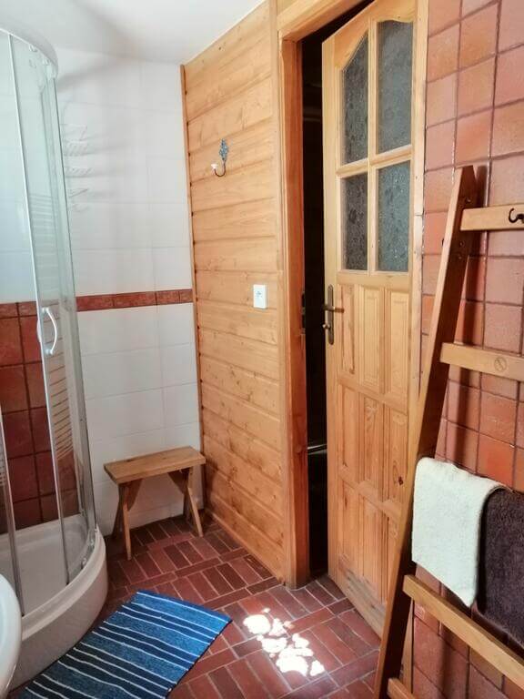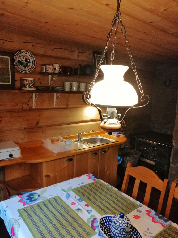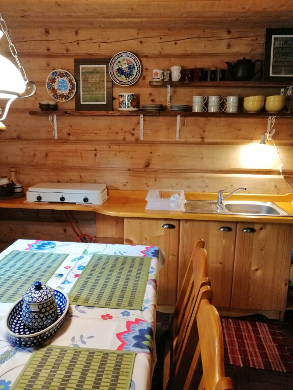 W kuchni znajdują się lodówka, kuchenka, piec kaflowy, mikrofalówka, komplet naczyń i sztućców oraz czajnik elektryczny. Łazienka składa się z prysznica, toalety oraz umywalki. W jednym z pokoi znajduje się dwuosobowe łóżko małżeńskie, w kolejnym zaś dwa oddzielne łóżka. Ponadto do dyspozycji Gości jest salonik z opcjonalnym miejscem do spania dla jednej osoby.