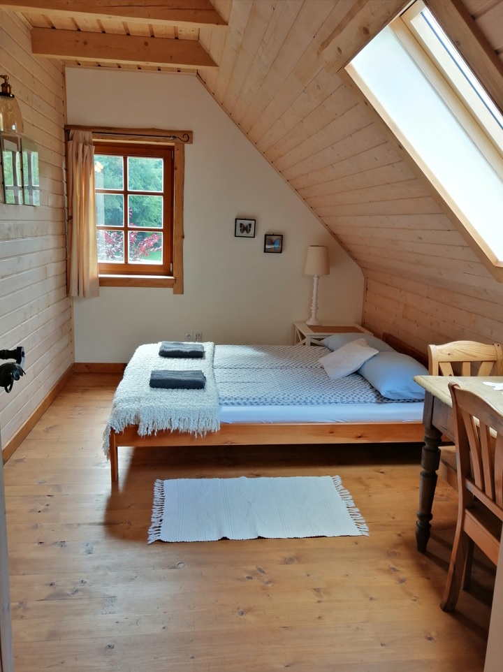 W kuchni znajdują się lodówka, kuchenka, piec kaflowy, mikrofalówka, komplet naczyń i sztućców oraz czajnik elektryczny. Łazienka składa się z prysznica, toalety oraz umywalki. W jednym z pokoi znajduje się dwuosobowe łóżko małżeńskie, w kolejnym zaś dwa oddzielne łóżka. Ponadto do dyspozycji Gości jest salonik z opcjonalnym miejscem do spania dla jednej osoby.